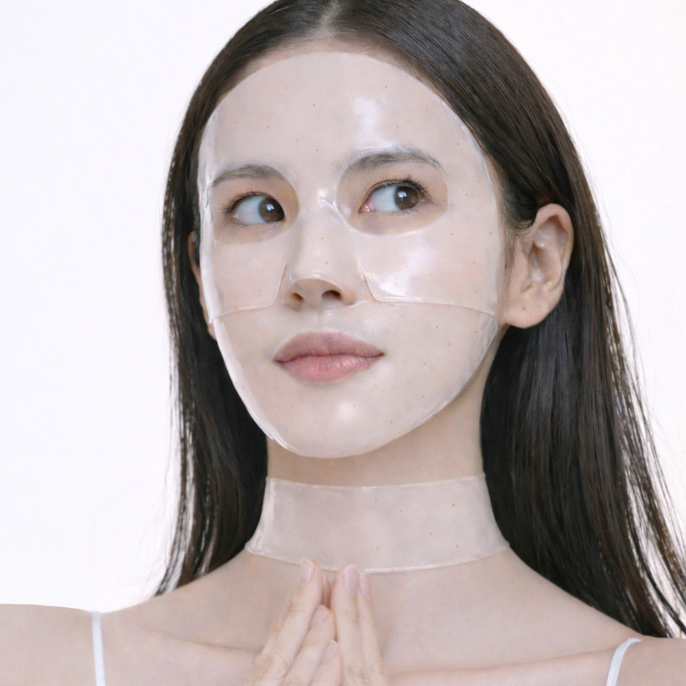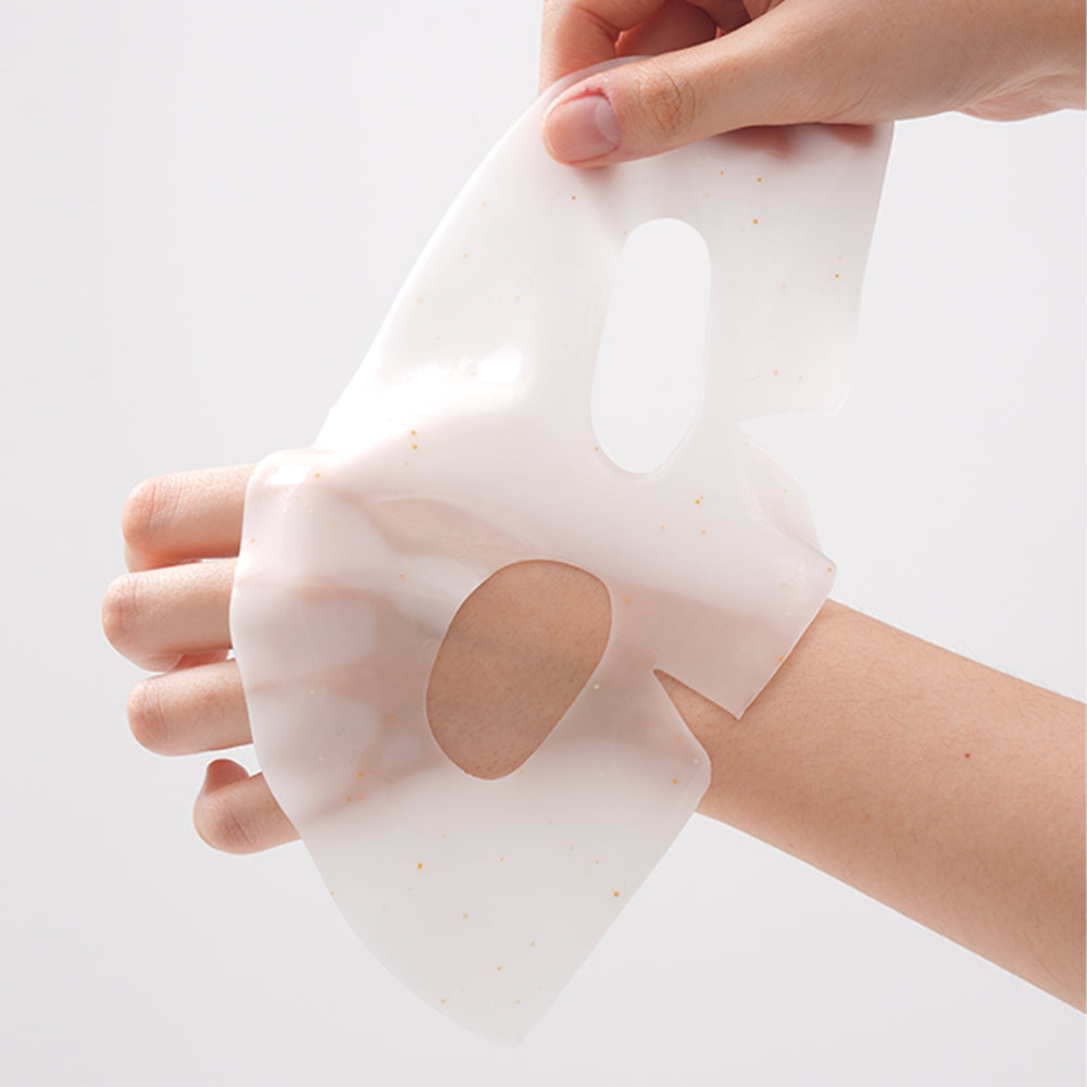 Jelly-Textured hydrogel mask that adheres closely to the skin and turns transparent as the essence absorbs.