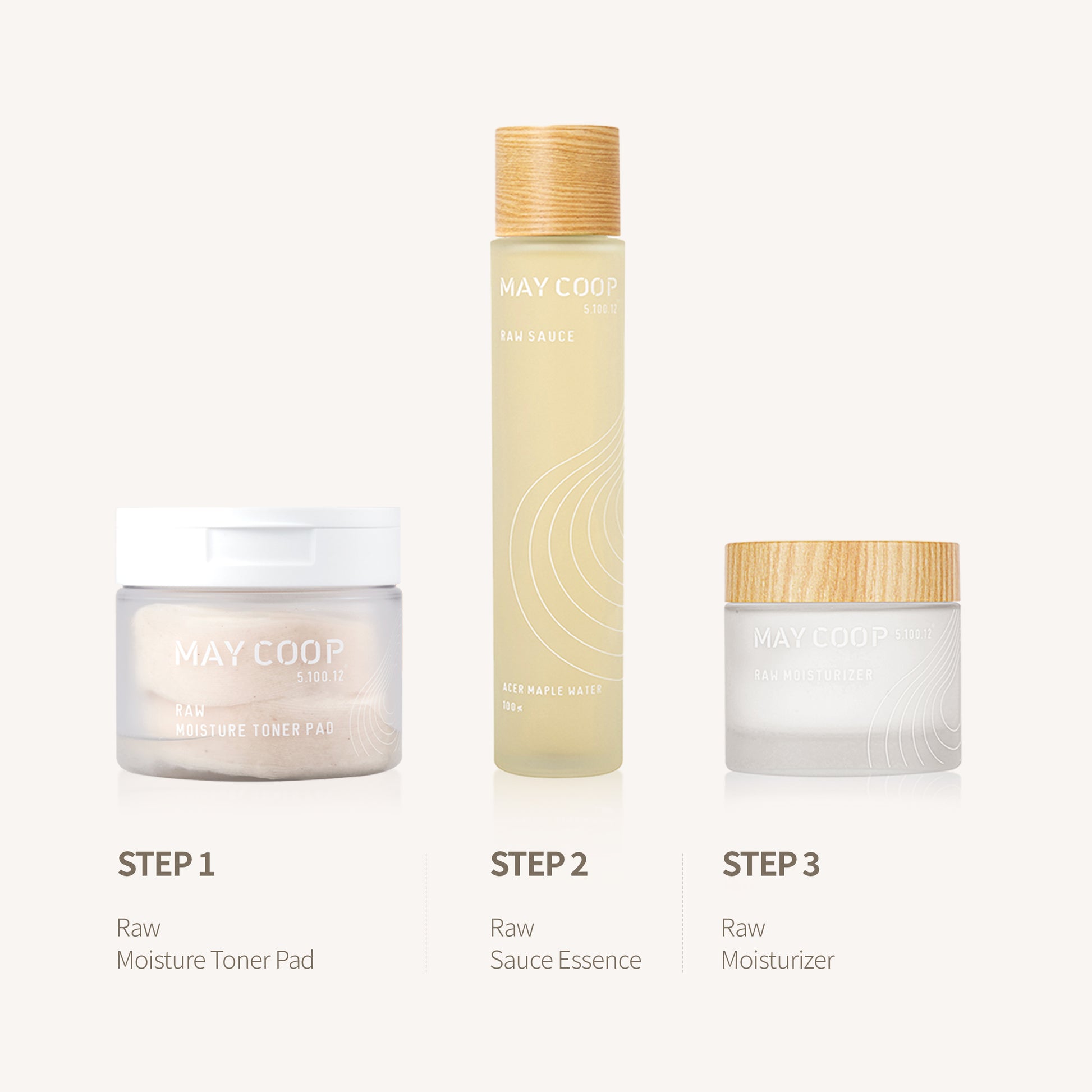 1. Raw Sauce : 76% Maple Tree Sap 2. Raw Activator : 63% Maple Tree Sap 3. Raw Moisturizer : 69% Maple Tree Sap